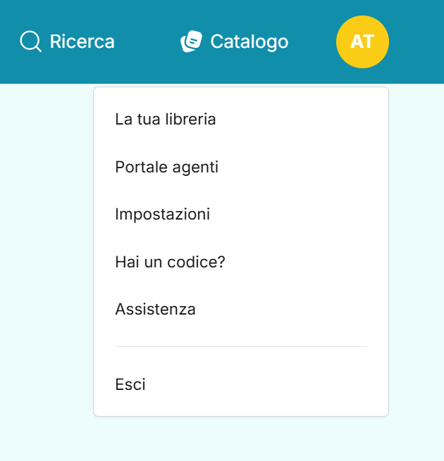 In alto a destra l'icona circolare con le iniziali del tuo account ti permettono inoltre di accedere al tuo profilo. Cliccando sopra l'icona rotonda con le tue iniziali si aprirà un menù a tendina per modificare o consultare le aree del tuo profilo personale.