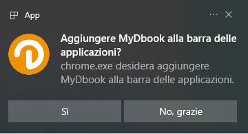 Apparirà anche una finestra che chiede se desideri salvare la app nella barra delle applicazioni.
